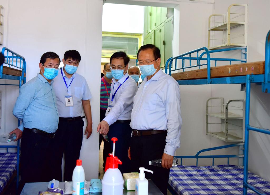在副校長(zhǎng)兼濟(jì)南校區(qū)黨工委書記、管委主任孫鶴汀的陪同下,羅公利一行先后現(xiàn)場(chǎng)查看了校區(qū)大門入口、醫(yī)務(wù)室及臨時(shí)隔離觀察區(qū)、學(xué)生返校查驗(yàn)通道、校園與居民宿舍區(qū)隔離工程、教學(xué)樓、餐廳、浴室、學(xué)生公寓等學(xué)生返校后學(xué)習(xí)生活重點(diǎn)區(qū)域,詳細(xì)了解這些區(qū)域的復(fù)學(xué)準(zhǔn)備和運(yùn)轉(zhuǎn)情況,對(duì)進(jìn)一步做實(shí)做細(xì)疫情防控工作、全力做好學(xué)生返校后的學(xué)習(xí)生活保障提出要求。