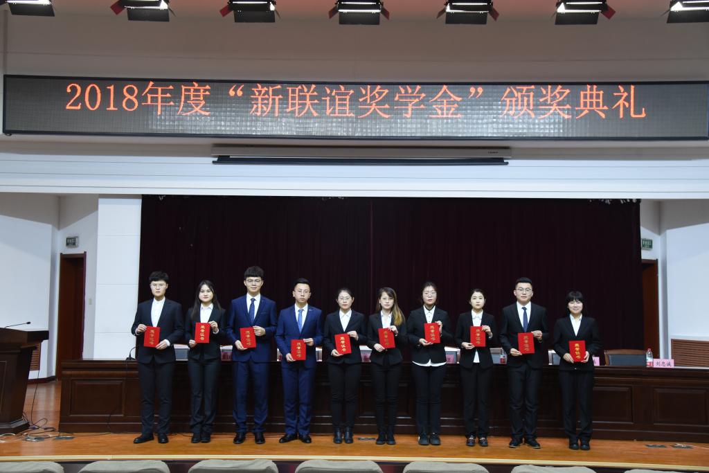 12月25日下午,財(cái)經(jīng)系在圖書(shū)館報(bào)告廳舉行2018年度“新聯(lián)誼獎(jiǎng)學(xué)金”頒獎(jiǎng)儀式。校區(qū)黨委常務(wù)副書(shū)記高永軍,新聯(lián)誼事務(wù)所集團(tuán)公司副總裁王桂蘭,校區(qū)管委會(huì)副主任樊銘渠,財(cái)經(jīng)系黨總支書(shū)記宋伯濤,新聯(lián)誼事務(wù)所集團(tuán)公司人力資源部副部長(zhǎng)郭真真,財(cái)經(jīng)系黨總支副書(shū)記、副主任胡寶征,財(cái)經(jīng)系副主任劉忠誠(chéng)出席儀式并在主席臺(tái)就坐。財(cái)經(jīng)系受獎(jiǎng)專業(yè)學(xué)生參加了頒獎(jiǎng)儀式。頒獎(jiǎng)儀式由合作辦學(xué)辦公室主任吳峻青主持。
