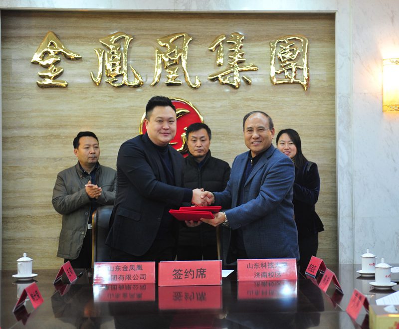 高永軍與張繼博現(xiàn)場(chǎng)簽署了《山東金鳳凰集團(tuán)有限公司與山東科技大學(xué)濟(jì)南校區(qū)合作協(xié)議》。