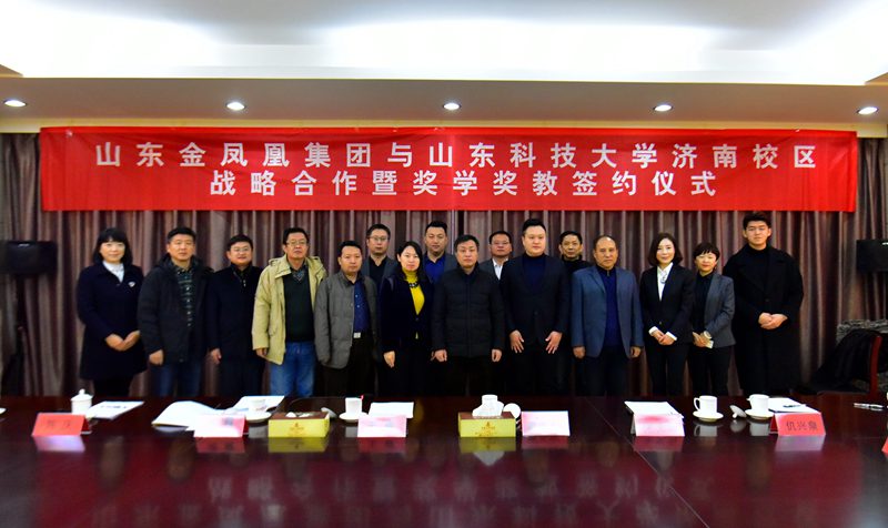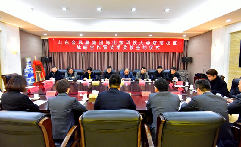 仉興泉宣讀了《山東金鳳凰集團(tuán)有限公司與山東科技大學(xué)濟(jì)南校區(qū)合作協(xié)議》,韓士榮宣讀了《“金鳳凰獎(jiǎng)教金、獎(jiǎng)學(xué)金、實(shí)習(xí)獎(jiǎng)學(xué)金”管理辦法》。