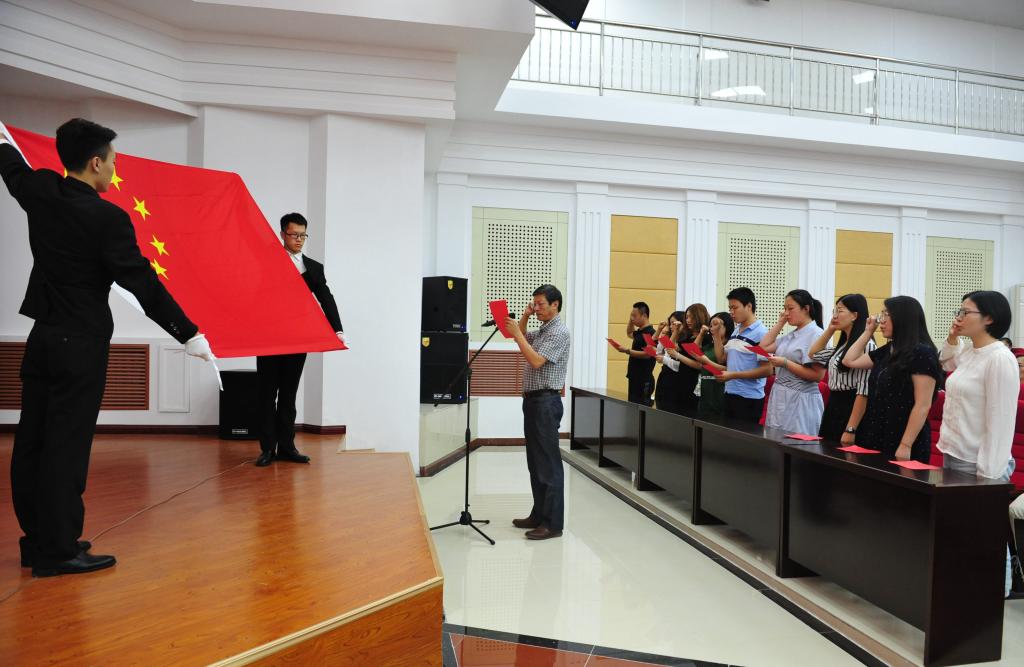 校區(qū)公共課部主任王兆立教授帶領(lǐng)校區(qū)新入職教職工面對國旗莊嚴(yán)宣誓,表達了志愿從事教書育人事業(yè)的決心和志向,表示要爭做“四有”好老師,為國家繁榮、民族振興貢獻智慧和力量。(攝影:云兵兵)
