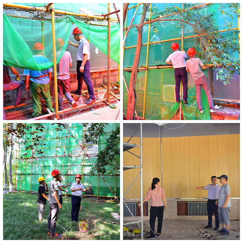 后勤管理部主任劉虎、學團工作部副主任趙長青談到,“每天到工地查看施工進展,常常幾趟下來汗流浹背需要換好幾身衣服才行”,為了確保新學期校園能以嶄新的面貌迎接廣大師生,他們表示“付出再多辛苦也值得”。