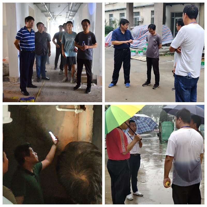 為確保校園總體安全,確保施工安全和工程質(zhì)量,副校長兼濟南校區(qū)黨工委書記、管委主任孫鶴汀率校區(qū)領導班子假期堅持在班在崗,及時安排、調(diào)度、巡察各項工作。各項目負責人和工作人員加大項目監(jiān)管力度,會同監(jiān)理單位,每天到各施工地點進行巡查,及時了解項目進展情況,協(xié)調(diào)解決在施工過程中遇到的問題,保質(zhì)量、保安全、保工期。尤其進入雨季以來,濟南多出現(xiàn)降雨急促、多大雨及暴雨,短時間內(nèi)出現(xiàn)大面積積水的情況,這給外墻施工增加了很大難度。雨季施工更是要求靈活機動,時刻關注天氣變化,最大程度降低因下雨造成的材料浸濕損失、人員怠工損失。為保證工期順利完成,經(jīng)常需要在保障工程質(zhì)量及安全的情況下夜間加班,力求精益求精。