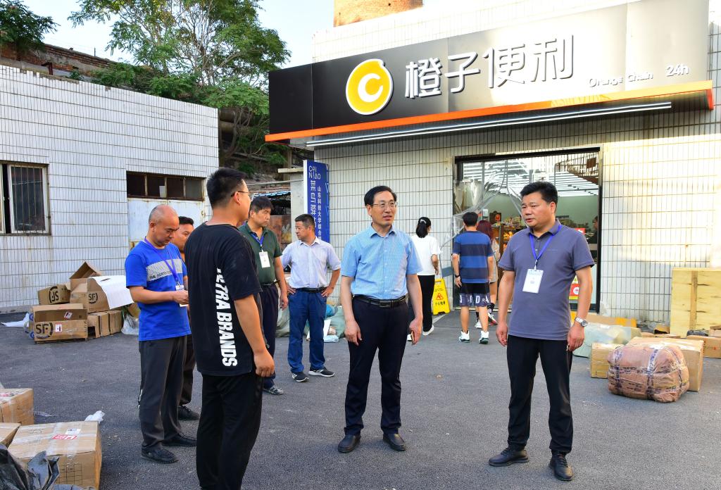9月2日,副校長(zhǎng)兼濟(jì)南校區(qū)黨工委書(shū)記、管委主任孫鶴汀檢查校區(qū)2020年秋季學(xué)期學(xué)生返校情況和各項(xiàng)服務(wù)保障工作。校區(qū)黨工委副書(shū)記賈長(zhǎng)響、管委副主任郭加書(shū)和黨政辦公室、學(xué)團(tuán)工作部、后勤管理部等相關(guān)部門負(fù)責(zé)人陪同檢查。