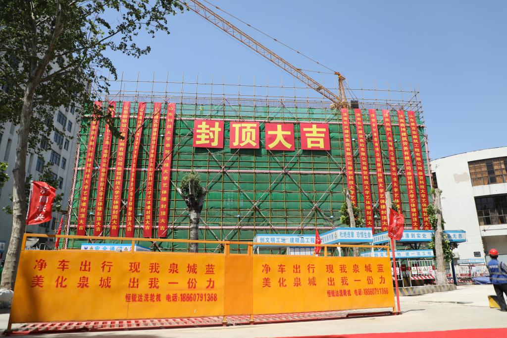 6月6日上午,濟(jì)南校區(qū)隆重舉行藝體樓主體結(jié)構(gòu)封頂儀式。副校長(zhǎng)兼濟(jì)南校區(qū)黨工委書記、管委主任孫鶴汀,濟(jì)南長(zhǎng)興建設(shè)集團(tuán)有限公司總裁董春普,山東晨旭建設(shè)項(xiàng)目管理咨詢有限公司總經(jīng)理吳軍,戴文工程設(shè)計(jì)(上海)有限公司副經(jīng)理王樹濤,山東新聯(lián)誼工程咨詢有限公司副總經(jīng)理路勇,校區(qū)管委副主任兼學(xué)團(tuán)工作部主任郭加書,各部門、各單位主要負(fù)責(zé)人,離退休老同志代表,學(xué)生代表,藝體樓建設(shè)專班和各參建單位工作人員參加儀式。儀式由校區(qū)黨工委副書記賈長(zhǎng)響主持。