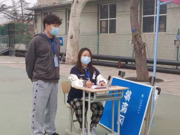 為確保各項(xiàng)防控工作的有序開展,濟(jì)南校區(qū)廣泛動(dòng)員各部門各單位所有力量,迅速組成一支由56名教職員工和401名學(xué)生組成的疫情防控志愿者隊(duì)伍。自3月12日校區(qū)進(jìn)行全員核酸檢測(cè)和每日核酸抽檢以來(lái),志愿者們經(jīng)過(guò)培訓(xùn)迅即投入到各個(gè)崗位中。在核酸檢測(cè)現(xiàn)場(chǎng),志愿者們分工合作,協(xié)助醫(yī)護(hù)人員進(jìn)行信息登記、體溫測(cè)量、流程指引、人員疏導(dǎo)等工作,確保每天核酸檢測(cè)工作有條不紊。此外,志愿者們還積極參與到防外賣進(jìn)校園督查、餐廳就餐秩序維護(hù)、為宿舍隔離同學(xué)送飯等工作中,哪里有需要哪里就會(huì)有志愿者們忙碌的身影。