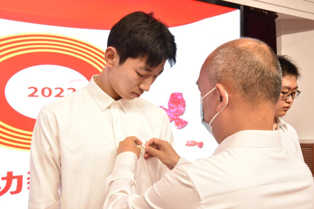 郭加書為新團員佩戴團徽