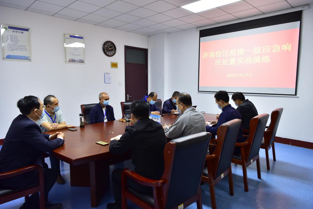5月7日上午,濟(jì)南校區(qū)舉行疫情一級(jí)應(yīng)急響應(yīng)實(shí)戰(zhàn)演練。校區(qū)疫情防控工作領(lǐng)導(dǎo)小組組長(zhǎng)、應(yīng)急處置專班總指揮孫鶴汀,校區(qū)兩委成員、各專項(xiàng)工作組成員及在校全體師生員工參加了實(shí)戰(zhàn)演練。