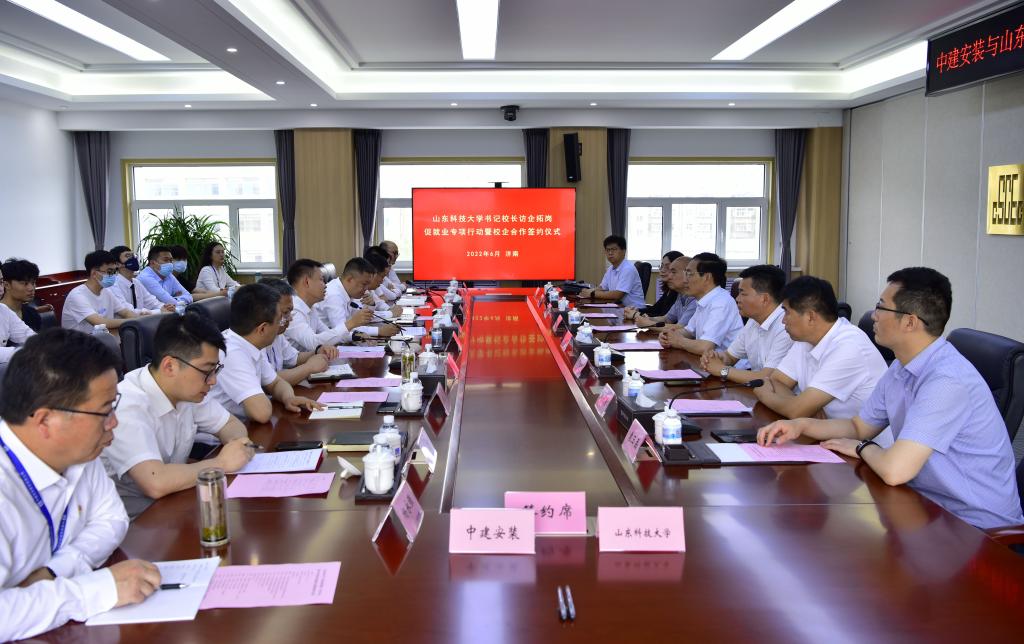 為貫徹落實黨中央、國務院關于高校畢業(yè)生就業(yè)工作的決策部署和教育部、省教育廳關于高校書記校長“訪企拓崗促就業(yè)”專項行動的通知精神,千方百計開拓更多就業(yè)創(chuàng)業(yè)崗位,6月14日,校黨委常委、副校長兼濟南校區(qū)黨委書記、管委主任孫鶴汀率校區(qū)有關部門負責人、各系黨總支副書記、畢業(yè)生代表赴中建安裝一公司訪企拓崗,簽訂大學生就業(yè)創(chuàng)業(yè)基地、黨建共建等校企合作協(xié)議。