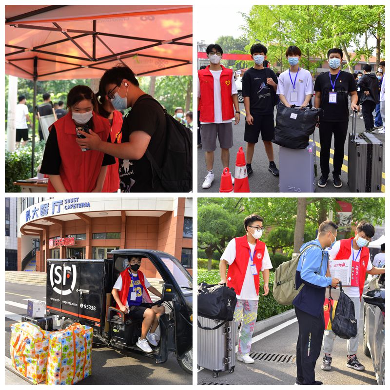 迎新志愿者一如既往是迎新季的靚麗風(fēng)景線,他們化身疫情防控測溫驗碼員、家長車輛疏導(dǎo)員、行李運輸駕駛員、報到注冊員、校園生活指導(dǎo)員…… 忙碌的身影穿梭在迎新現(xiàn)場?!耙粚σ唬c對點”的貼心服務(wù)為新生留下美好難忘的入學(xué)印象,“紅馬甲”“藍馬甲”,閃亮的黨徽、團徽,生動詮釋了傳幫帶的優(yōu)良傳統(tǒng)和志愿精神。