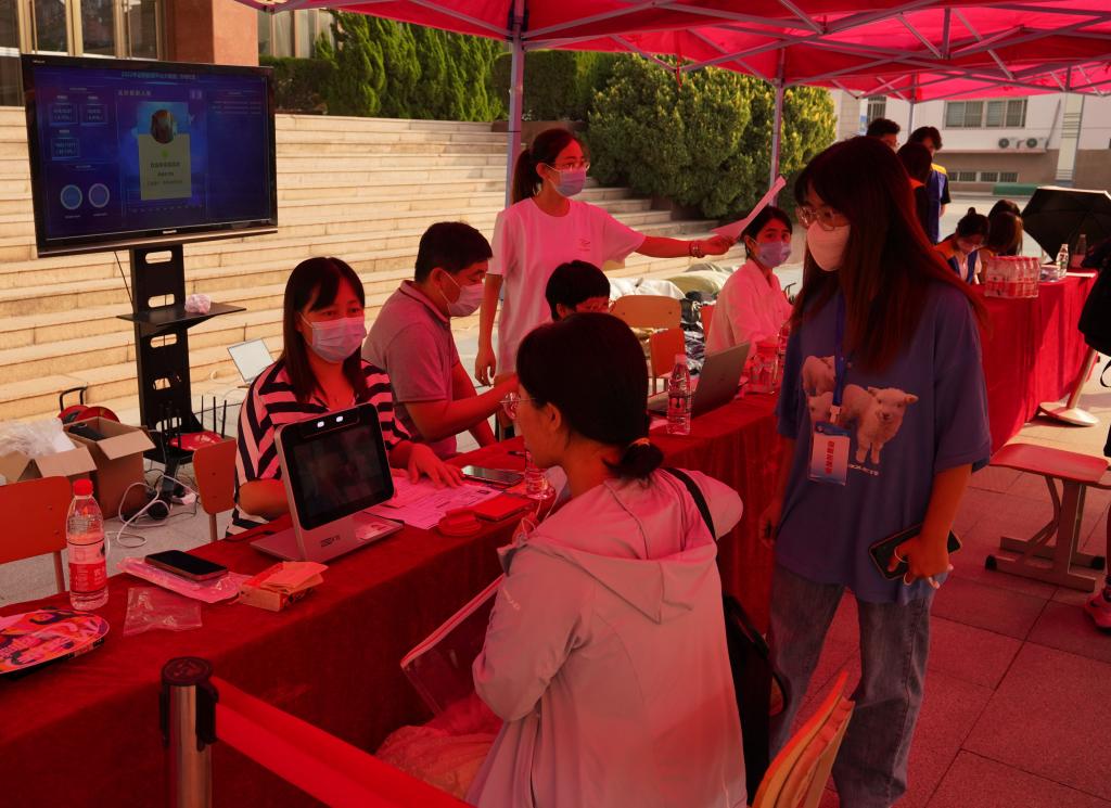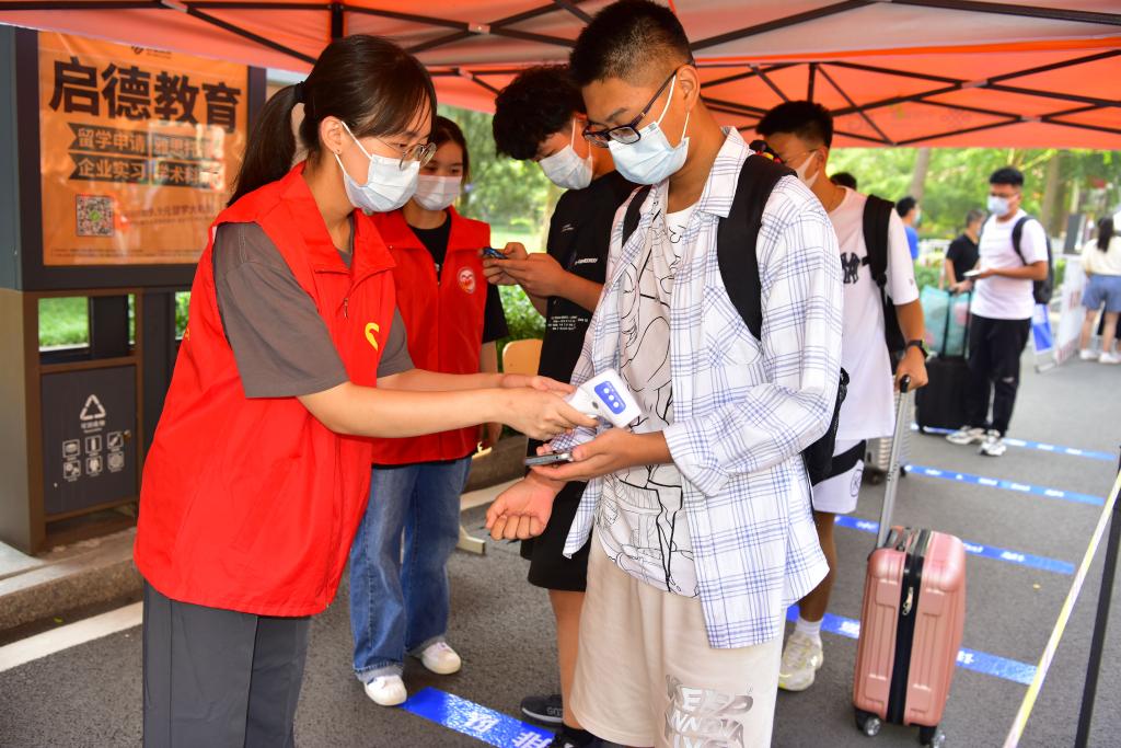 工作人員為新生辦理報到手續(xù)
