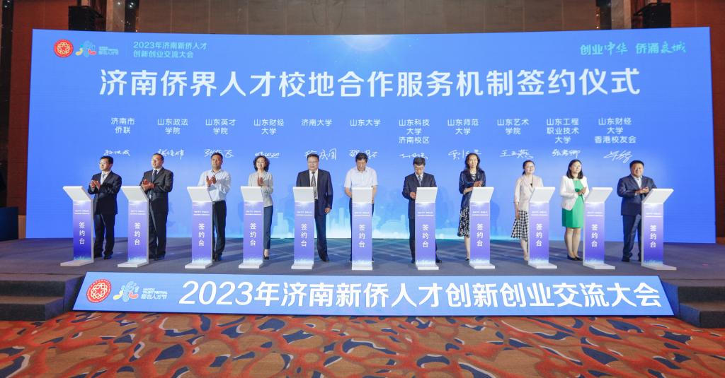 為深入貫徹落實黨的二十大精神,扎實推進學(xué)習(xí)貫徹習(xí)近平新時代中國特色社會主義思想主題教育,進一步凝聚僑界智慧和力量,6月15日上午,濟南市僑聯(lián)舉辦“創(chuàng)業(yè)中華·僑涌泉城——2023年濟南新僑人才創(chuàng)新創(chuàng)業(yè)交流活動”,校區(qū)黨委副書記賈長響、管委副主任孫國強應(yīng)邀出席活動并簽署“濟南僑界人才校地合作服務(wù)機制”。