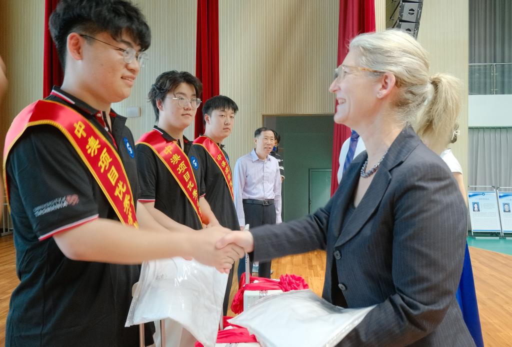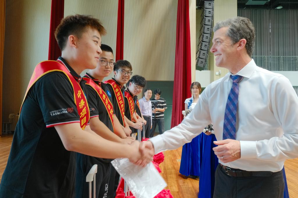 為中澳項目優(yōu)秀學生代表頒發(fā)紀念品