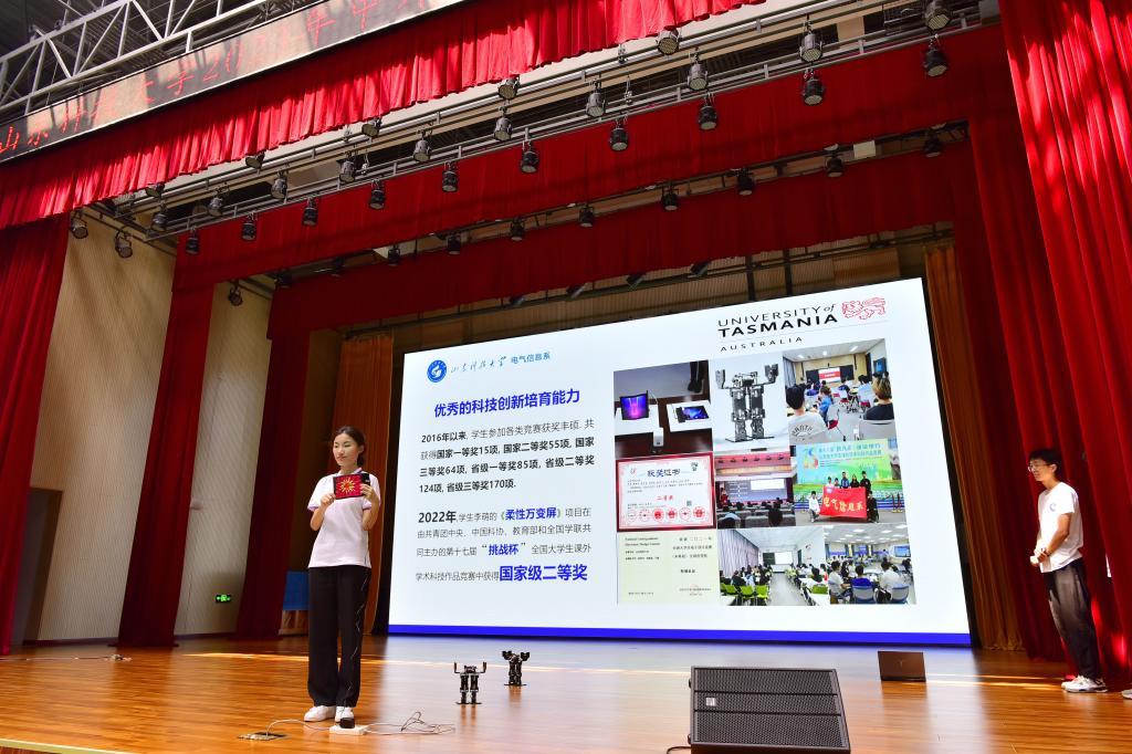 開放日活動現(xiàn)場氣氛熱烈。教學科研部、學團工作部、國際交流與合作辦公室、斯威本學院、財經(jīng)系、電氣信息系等分別設立招生咨詢服務臺進行咨詢答疑。各單位精心設計了宣傳冊、宣傳展板、宣傳視頻、科技創(chuàng)新成果展示等,充分展示中外合作辦學成果、學習生活環(huán)境及各專業(yè)的特色優(yōu)勢。部分考生及家長還參觀了院系實驗室、智慧教室、圖書館、宿舍等場所。(攝影:王小杰 朱凱忠)