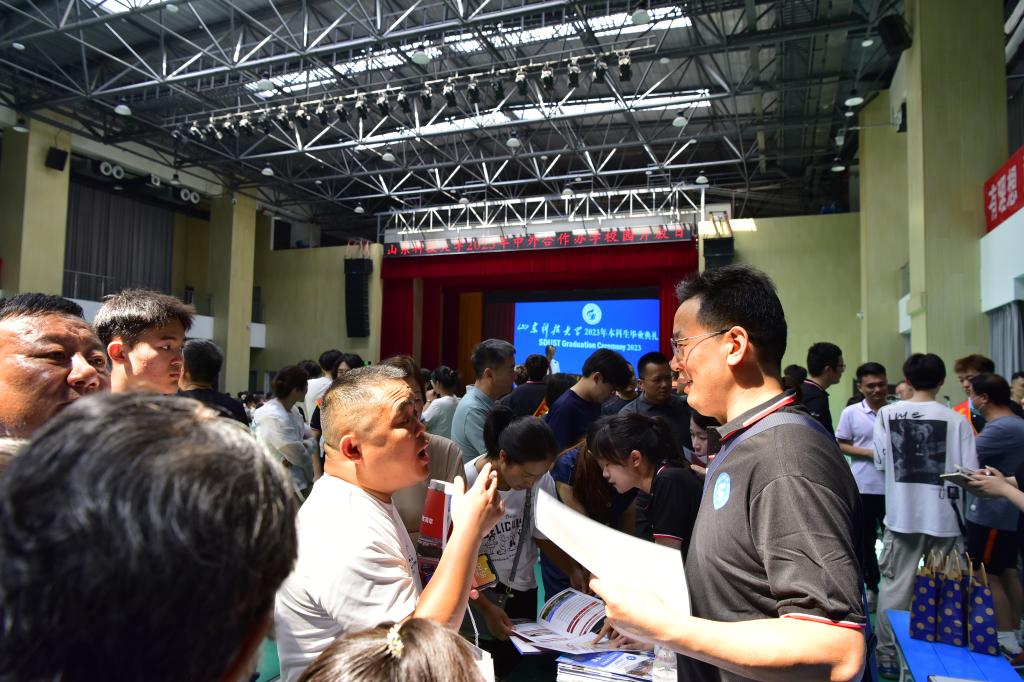 7月1日,山東科技大學2023年中外合作辦學校園開放日活動在濟南校區(qū)藝體樓二樓多功能廳順利舉行。活動以“融入國際化 一起向未來”為主題,吸引了300余名考生及家長積極參與??忌凹议L們實地了解學校中外合作辦學特色和優(yōu)勢,切身感受學校國際化辦學理念、現(xiàn)代化辦學條件和精致化校園環(huán)境。副校長兼濟南校區(qū)黨委書記、管委主任徐龍飛,澳大利亞塔斯馬尼亞大學副校長(國際)Rob Wilson,AEMG教育集團董事長李新慶等到現(xiàn)場指導工作。