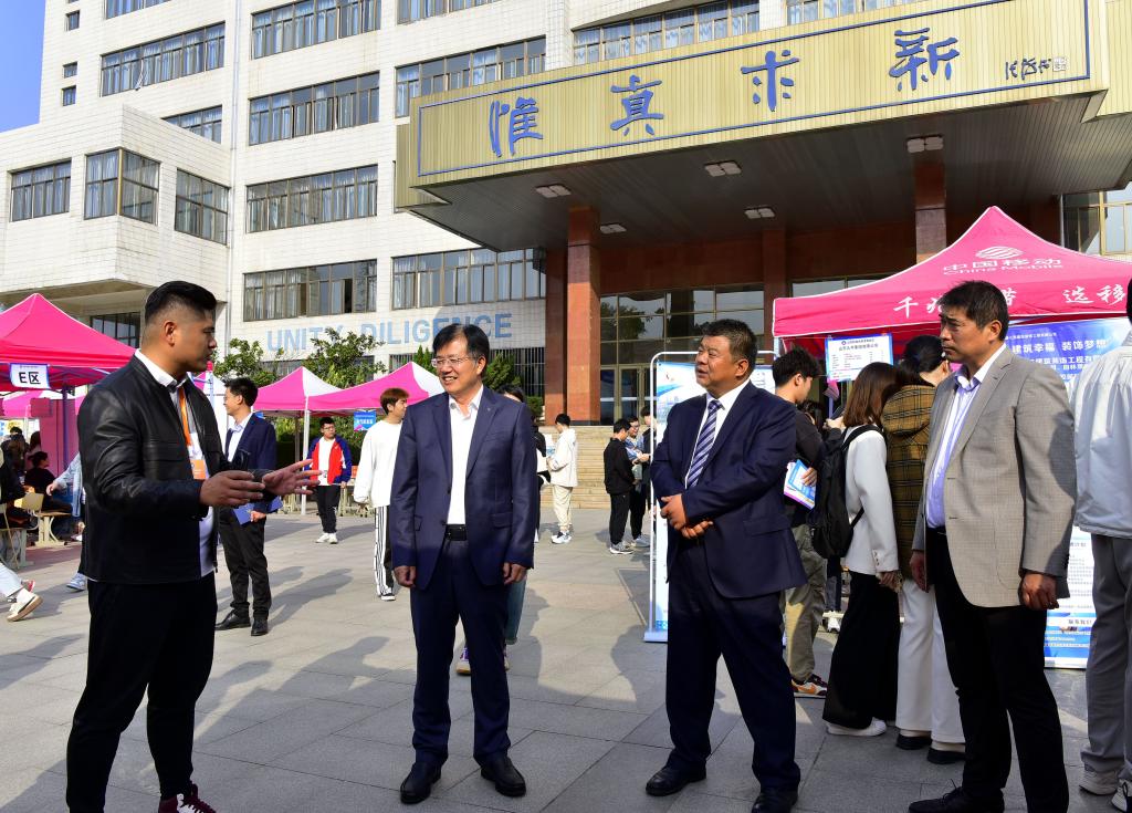 山東科技大學(xué)黨委常委、副校長兼濟(jì)南校區(qū)黨委書記、管委主任徐龍飛,校區(qū)黨委副書記賈長響,校區(qū)管委副主任郭加書、孫國強(qiáng),天橋區(qū)公共就業(yè)和人才服務(wù)中心副主任李茜茜以及相關(guān)部門負(fù)責(zé)人到現(xiàn)場指導(dǎo),與用人單位及畢業(yè)生進(jìn)行深入交流。在與企業(yè)交流中,深入了解企業(yè)發(fā)展和對人才的需求,介紹校區(qū)的專業(yè)優(yōu)勢和人才培養(yǎng)情況,希望進(jìn)一步深化校企合作,為畢業(yè)生提供更多的實(shí)習(xí)和就業(yè)機(jī)會;在與求職畢業(yè)生的交流中,鼓勵畢業(yè)生把握求職擇業(yè)機(jī)會,厚植家國情懷,為國家和社會貢獻(xiàn)青春才智。