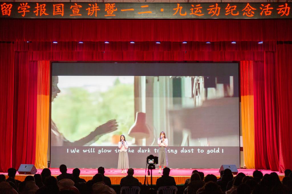 12月17日,為大力加強(qiáng)愛國主義教育,弘揚(yáng)愛國主義精神,濟(jì)南校區(qū)在藝體樓舉辦“留學(xué)夢 報(bào)國行”留學(xué)報(bào)國主題宣講暨“一二·九”紀(jì)念活動(dòng),創(chuàng)新形式講述留學(xué)報(bào)國故事,打造新時(shí)代愛國主義教育的科大品牌。校區(qū)黨委副書記賈長響、管委副主任郭加書,相關(guān)部門負(fù)責(zé)人出席活動(dòng)。全體學(xué)生工作干部、學(xué)生代表近600人參加活動(dòng)。