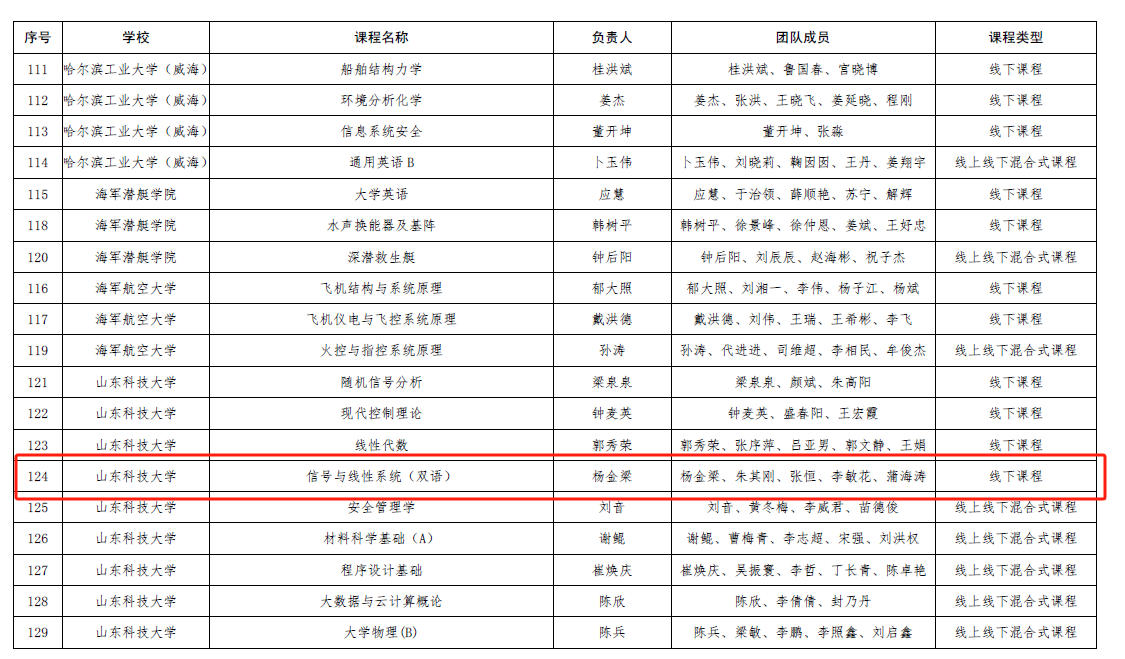 近年來,“信號與線性系統(tǒng)(雙語)”課程教學團隊致力于雙語課程建設和教學改革,獲評校級本科課堂教學改革示范團隊,立項山東省本科教學改革研究項目4項、校級教育教學研究“群星計劃”重點項目4項。課程獲批校級在線課程、課程思政示范課程、雙語課程、一流課程等課程建設項目。