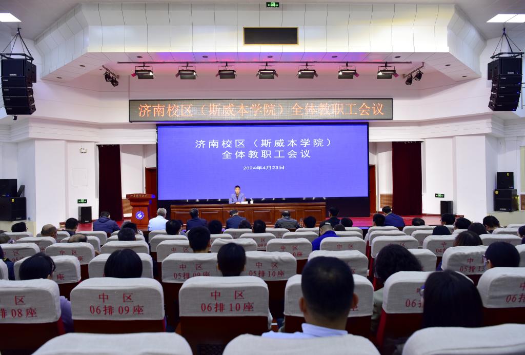 4月23日,濟(jì)南校區(qū)(斯威本學(xué)院)黨委常務(wù)副書記梁賽江主持召開全體教職工會(huì)議,就進(jìn)一步加強(qiáng)全員育人、合力推進(jìn)學(xué)風(fēng)建設(shè)、提升就業(yè)質(zhì)量、優(yōu)化校園管理、改善辦學(xué)環(huán)境等工作同廣大教工深入交流。