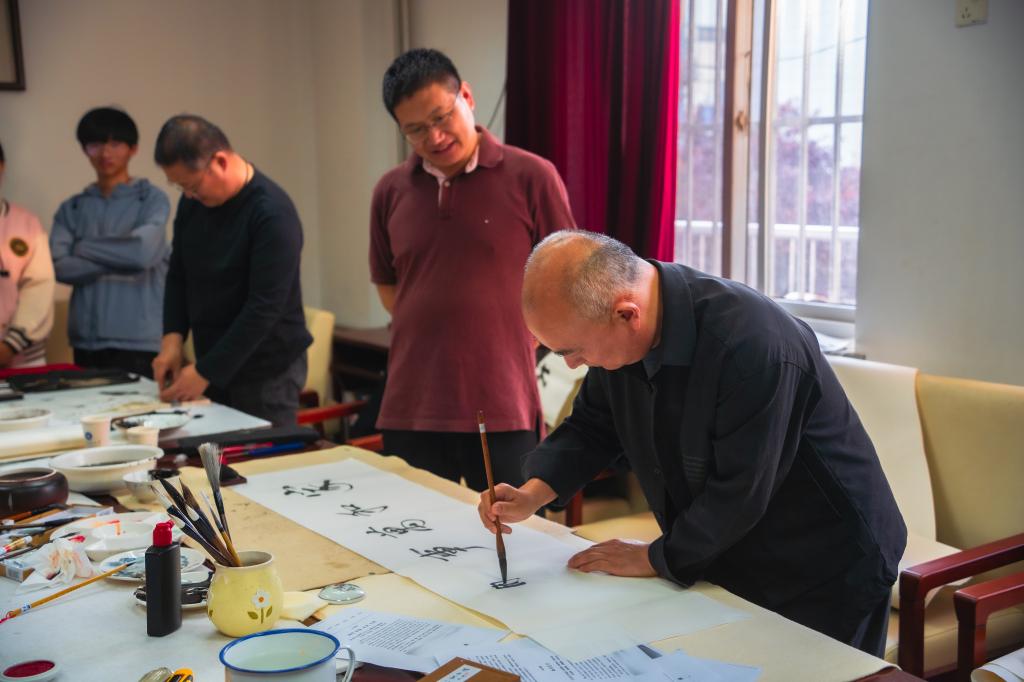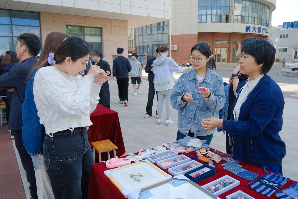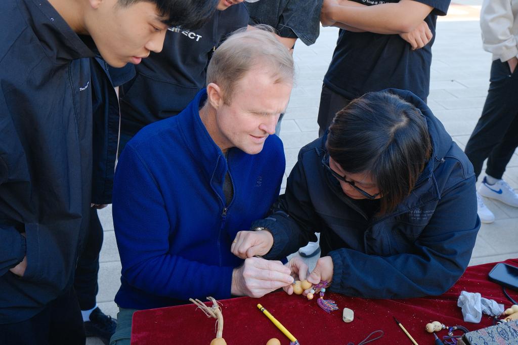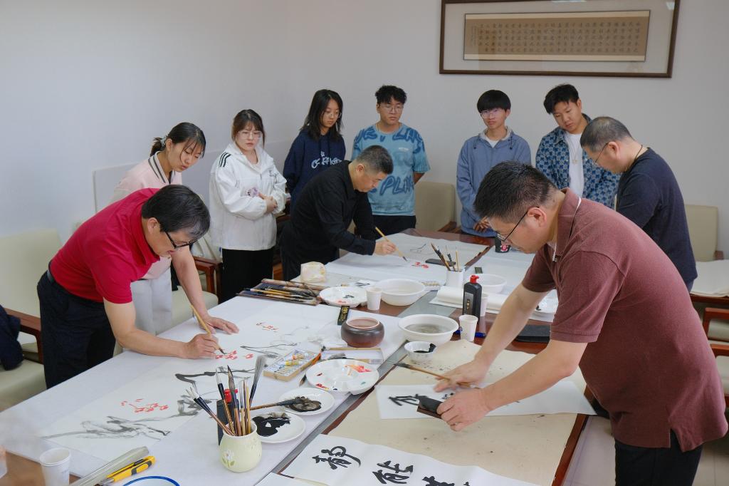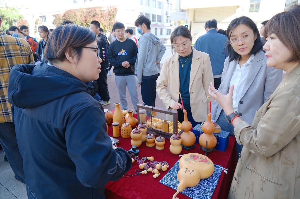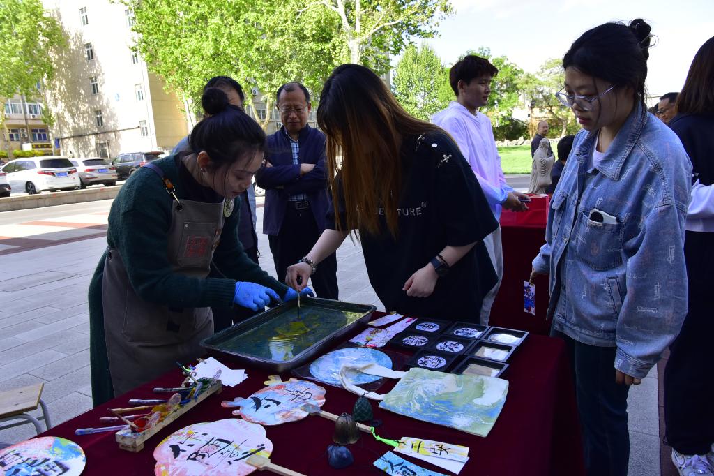 儀式啟動(dòng)后,師生在現(xiàn)場(chǎng)工作人員引導(dǎo)下開始了瀏覽和體驗(yàn)。山東畫院的專家們現(xiàn)場(chǎng)揮毫潑墨,展示了水墨藝術(shù)的靈動(dòng)和深邃,指導(dǎo)中外師生如何運(yùn)筆和布墨,在互動(dòng)學(xué)習(xí)中體驗(yàn)中國(guó)傳統(tǒng)書畫的博大精深。古陶瓷修復(fù)技藝、濟(jì)南陶塑、魯繡、田氏鋦瓷修復(fù)技藝、葫蘆砑花、周氏耳廓放血療法、髹漆技藝等七項(xiàng)非遺傳承人現(xiàn)場(chǎng)生動(dòng)展示傳統(tǒng)非遺技藝,帶領(lǐng)師生沉浸式的體驗(yàn)傳承之美,感悟文化之魂。