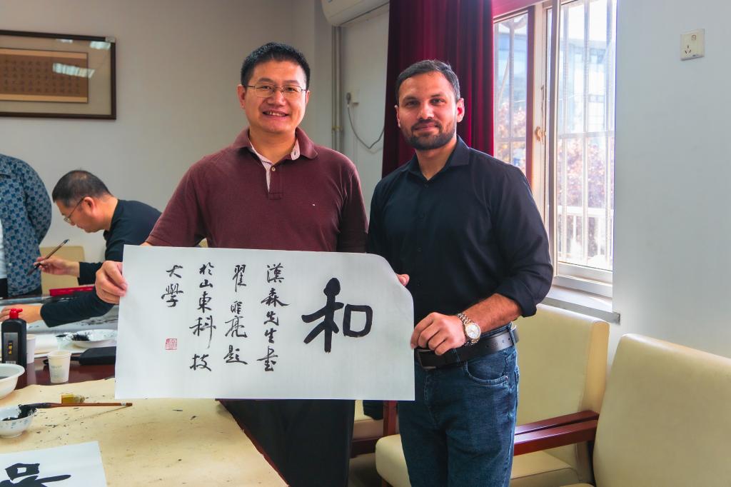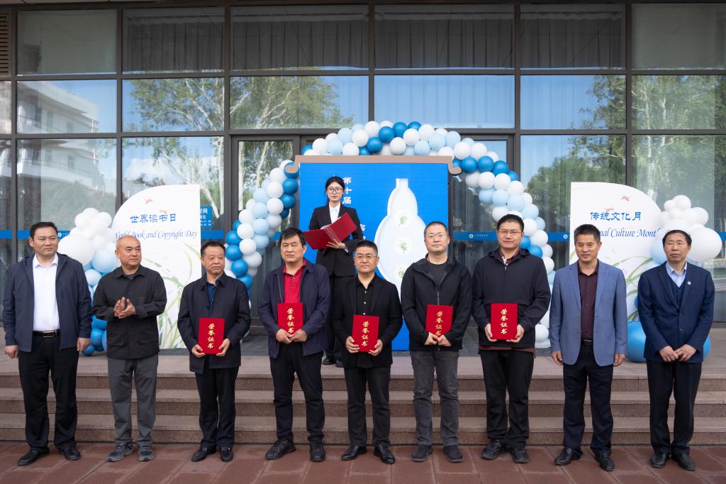 梁賽江宣布“山東科技大學(xué)濟(jì)南校區(qū)(斯威本學(xué)院)第十屆傳統(tǒng)文化月暨世界讀書日”系列活動(dòng)正式啟動(dòng)。梁賽江和郭加書共同為山東書畫院專家們頒發(fā)收藏證書。