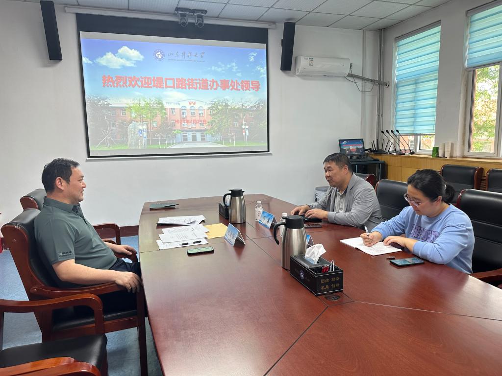 4月25日,堤口路街道經(jīng)濟(jì)發(fā)展中心負(fù)責(zé)人鄧勇一行到濟(jì)南校區(qū)調(diào)研,了解市校融合發(fā)展戰(zhàn)略工程滾動支持項(xiàng)目推進(jìn)情況。濟(jì)南校區(qū)管委副主任兼教務(wù)部主任劉國棟熱情接待客人并座談交流。
