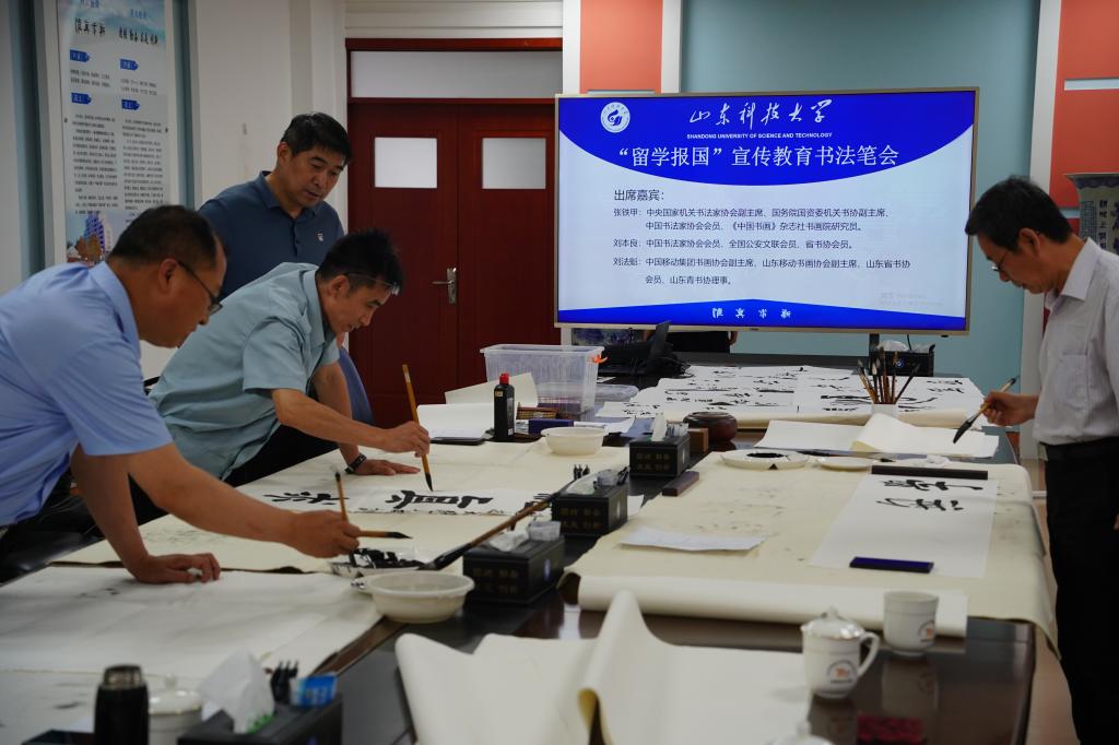 濟(jì)南校區(qū)積極探索“留學(xué)報(bào)國”教育文化育人路徑,在傳承弘揚(yáng)留學(xué)報(bào)國精神中積極培育和踐行社會主義核心價(jià)值觀,著力增強(qiáng)師生的家國情懷和擔(dān)當(dāng)意識。6月16日,中央國家機(jī)關(guān)書法家協(xié)會副主席、國務(wù)院國資委機(jī)關(guān)書協(xié)副主席張鐵甲一行應(yīng)邀參加校區(qū)舉辦的“留學(xué)報(bào)國”宣傳教育書法筆會活動(dòng)。