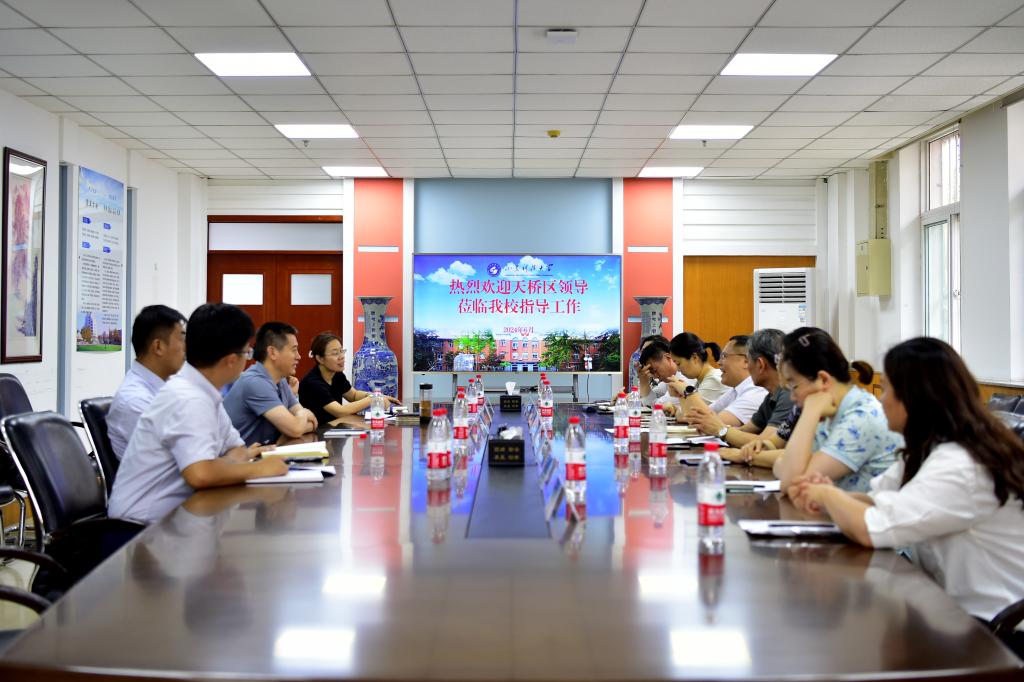 梁賽江對(duì)張舒平一行表示熱烈歡迎,并從校區(qū)辦學(xué)規(guī)模、專業(yè)設(shè)置、人才培養(yǎng)、校地合作等方面介紹了校區(qū)有關(guān)情況。他表示,校區(qū)的發(fā)展離不開天橋區(qū)委、區(qū)政府的大力支持,校區(qū)將緊密圍繞“三大功能區(qū)”建設(shè),主動(dòng)融入服務(wù)地方,深化合作內(nèi)涵,積極開展產(chǎn)教融合、協(xié)同就業(yè)等深度合作。