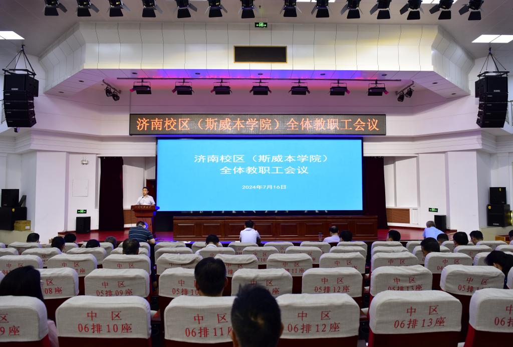 7月16日,濟(jì)南校區(qū)在圖書(shū)館報(bào)告廳召開(kāi)全體教職工會(huì)議,全面總結(jié)校區(qū)2024年上半年工作,安排部署暑期工作,明確下半年工作目標(biāo)任務(wù)。