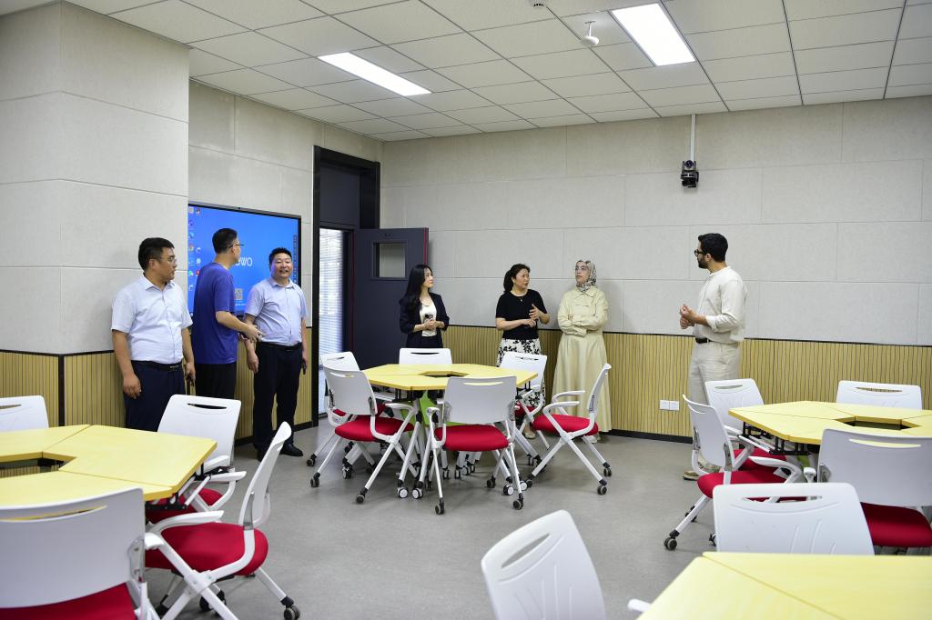 客人一行參觀了圖書館、教室、學(xué)生公寓、餐廳等學(xué)習(xí)生活場(chǎng)所,深入了解國(guó)際化辦學(xué)條件。