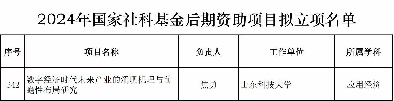 近日,2024年度國(guó)家社科基金后期資助項(xiàng)目立項(xiàng)結(jié)果揭曉,焦勇教授申報(bào)的課題《數(shù)字經(jīng)濟(jì)時(shí)代未來(lái)產(chǎn)業(yè)的涌現(xiàn)機(jī)理與前瞻性布局研究》榮獲立項(xiàng),標(biāo)志著校區(qū)在國(guó)家社科基金項(xiàng)目申報(bào)方面取得新突破。
