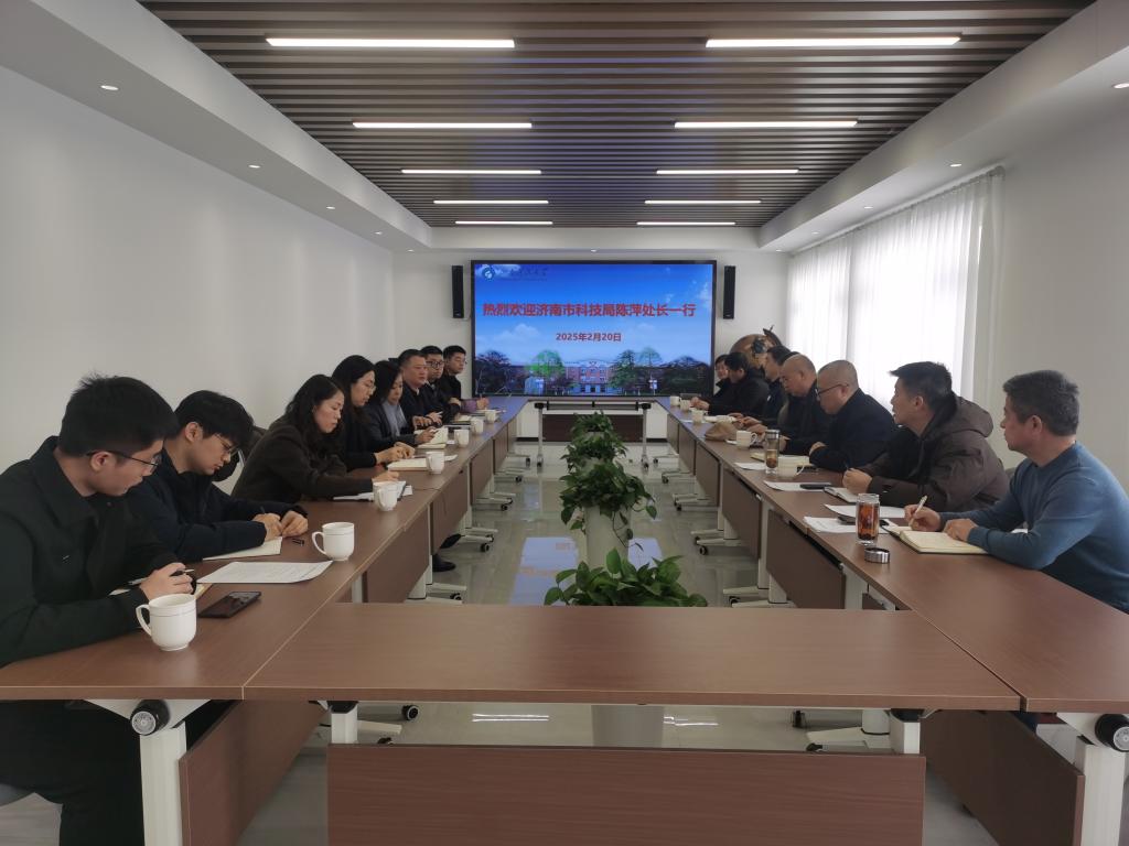 2月20日,濟南市科技局產業(yè)發(fā)展處處長陳萍、中上(山東)產業(yè)控股有限公司董事長原洪林、堤口路街道辦事處主任席凌等一行到濟南校區(qū)調研交流。校區(qū)黨委常務副書記梁賽江,管委常務副主任郭加書,管委副主任孫國強、劉西奎等會見客人并進行座談交流。