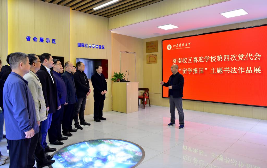 327日,在學(xué)校第四次黨代會(huì)即將召開之際,濟(jì)南校區(qū)喜迎學(xué)校第四次黨代會(huì)暨“留學(xué)報(bào)國(guó)”主題書法展在嵙友泉城會(huì)客廳開幕。校區(qū)管委常務(wù)副主任郭加書、校區(qū)班子成員、師生代表出席開幕式。