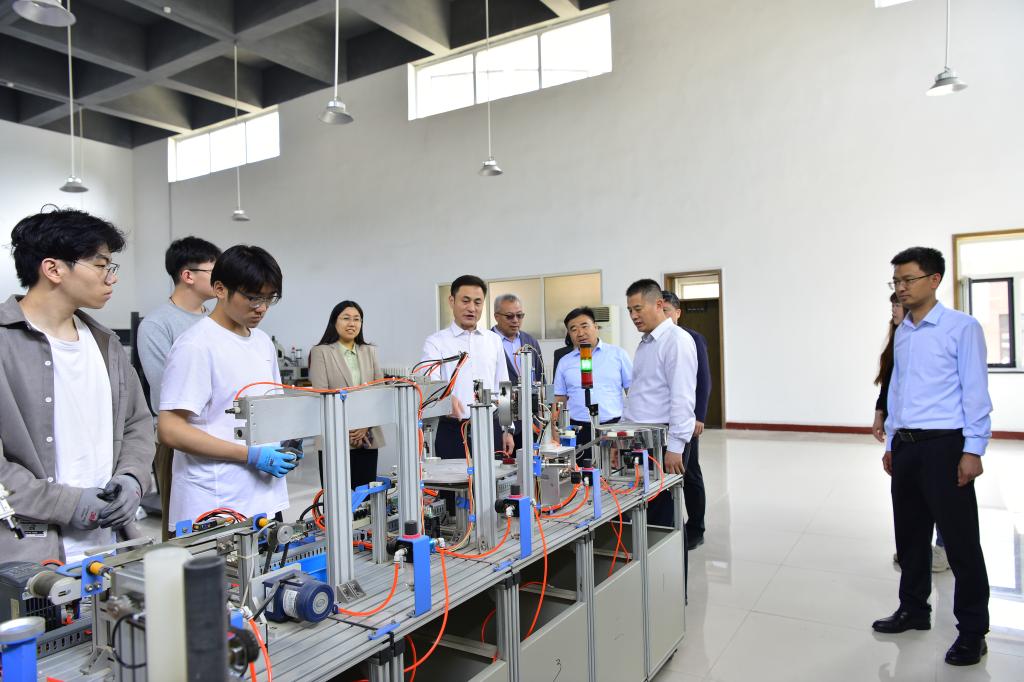 梁賽江對焦霄黎一行表示熱烈歡迎,陪同參觀并詳細介紹了智能制造技術(shù)實驗室、智能機器人科教融合創(chuàng)新中心、地質(zhì)數(shù)字化應用與深部地熱能實驗室、智能技術(shù)協(xié)同創(chuàng)新實驗室的功能定位、科研方向和發(fā)展規(guī)劃。