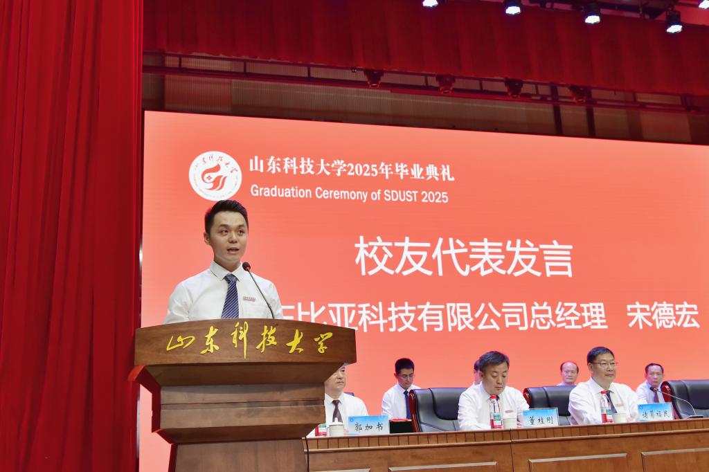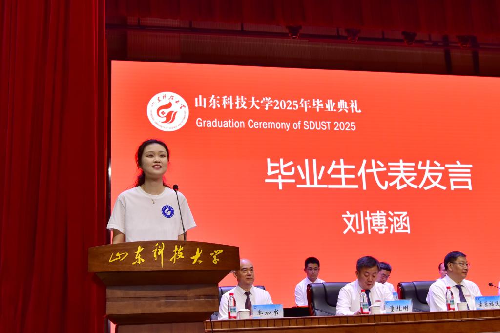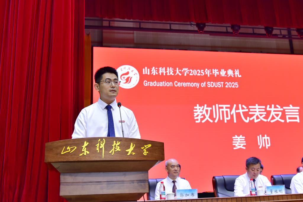 畢業(yè)生代表劉博涵發(fā)言,分享了自己在科大的成長(zhǎng)與收獲,深情表達(dá)了對(duì)母校的感恩之情與美好祝愿,立志將青春揮灑在祖國大地上。校友代表宋德宏深情回顧了在母校奮斗成長(zhǎng)的青春歲月,對(duì)母校的悉心培育表達(dá)了誠摯的感謝,并勉勵(lì)畢業(yè)生秉持堅(jiān)韌不拔、開拓創(chuàng)新的品格,努力成為具備工匠精神的時(shí)代青年。教師代表姜帥回顧了與同學(xué)們教學(xué)相長(zhǎng)的難忘歲月,勉勵(lì)大家始終心懷家國,始終保持對(duì)知識(shí)的渴求,不斷拓寬視野,提升綜合能力,以樂觀積極的心態(tài)迎接挑戰(zhàn),書寫屬于更加精彩的人生篇章。