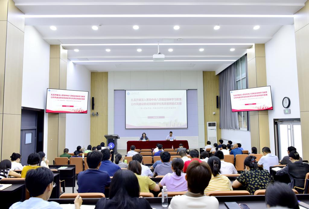 7月15日,為推進深入貫徹中央八項規(guī)定精神學習教育走深走實,持續(xù)鞏固拓展作風建設成果,校黨委常委、副校長董海榮以“扎實開展深入貫徹中央八項規(guī)定精神學習教育 以作風建設新成效賦能學校高質量跨越式發(fā)展”為題,為校區(qū)教工黨員講授深入貫徹中央八項規(guī)定精神學習教育專題黨課。