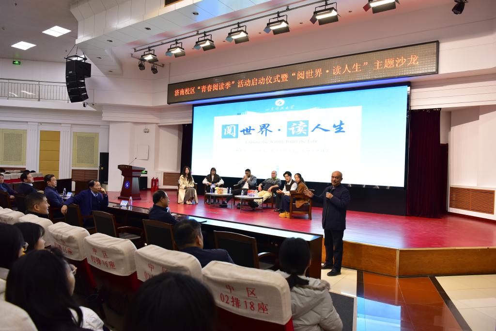 為進(jìn)一步營(yíng)造濃厚的校園閱讀氛圍,激發(fā)師生的閱讀熱情,搭建良好閱讀平臺(tái),10月28日,濟(jì)南校區(qū)“青春閱讀季”活動(dòng)啟動(dòng)儀式暨“閱世界·讀人生”主題沙龍在圖書館報(bào)告廳舉行。活動(dòng)由校區(qū)黨委委員兼黨政辦公室主任孫國(guó)強(qiáng)主持。