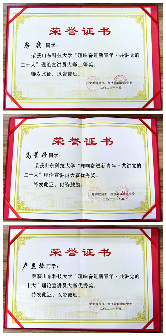 近日,在學(xué)校宣傳部組織的理響奮進(jìn)新青年·共講黨的二十大理論宣講員大賽中,濟(jì)南校區(qū)學(xué)生房康榮獲二等獎(jiǎng),高菁妤、盧昱棟榮獲優(yōu)秀獎(jiǎng)。