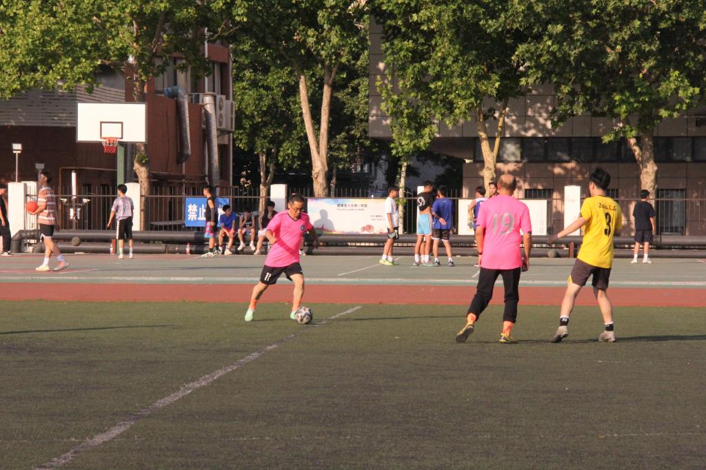 下午5時許,工會董向陽主席致辭,并向畢業(yè)生參賽隊員贈送禮品,隨即比賽正式開始。本次比賽采取半場九人制,年齡優(yōu)勢讓畢業(yè)生隊在開場后迅速占據(jù)主動,多次獲得得分良機,但運氣稍欠,直到臨近半場結(jié)束,畢業(yè)生隊打出一次成功的邊路組合進攻,由門前隊員搶點得分,打破了場上僵局。下半場,教工隊體能明顯下降,畢業(yè)生隊抓住機會再下一城,2:0領(lǐng)先。隨后,教工隊展開最后的反攻,多次覓得良機,無奈臨門一腳總是欠缺,但還是在終場前抓住機會扳回一球,最終比分定格在1:2。