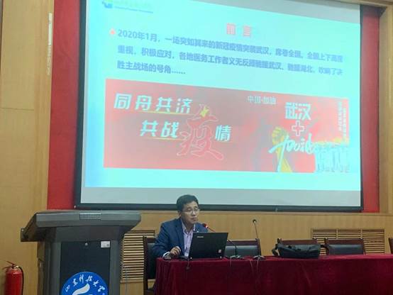 孫主任是山東省立三院呼吸內(nèi)科副主任,同時(shí)也是山東省第一批援鄂醫(yī)務(wù)人員。本次講座有兩個(gè)主題。孫主任首先講述了此次援鄂的經(jīng)過(guò)。在這場(chǎng)沒(méi)有硝煙的戰(zhàn)爭(zhēng)中,醫(yī)護(hù)人員們沖在最前線,他們是最勇敢的戰(zhàn)士。當(dāng)疫情響起,他們毅然決然的勇往直前,放棄了休假,放棄了團(tuán)圓,選擇了堅(jiān)守,選擇了與病魔抗?fàn)?。他們是最美的逆行者。講座現(xiàn)場(chǎng)響起一陣陣的掌聲,在疫情肆虐的當(dāng)下,所有為控制病情而努力的人都是負(fù)重前行的人,都值得我們給以真誠(chéng)的感謝和崇高的敬禮。