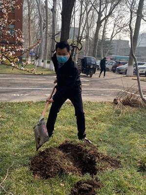 為深入貫徹落實習近平總書記“綠水青山就是金山銀山”的綠色發(fā)展理念,切實加強生態(tài)環(huán)境保護建設,提升黨員群眾保護環(huán)境的意識,增強支部凝聚力。3月12日,在我國第43個植樹節(jié)來臨之際,后勤黨支部組織開展了“植樹節(jié)”主題黨日活動, 校區(qū)黨工委副書記賈長響參加本次活動。