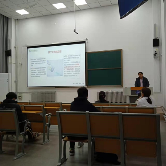 為做好校區(qū)秋冬季常態(tài)化疫情防控工作,校區(qū)邀請山東省立三院孫金林主任到學校針對如何應對新冠病毒德爾塔毒株等知識進行專門講座,學校新冠肺炎疫情防控工作領導小組成員、各學院輔導員、醫(yī)務人員及各年級學生近100人在現(xiàn)場聽取了講座。