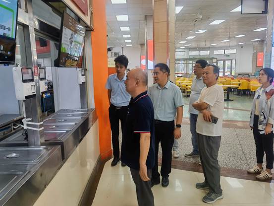 8月28日開學(xué)首日,為保障后勤服務(wù)保障等各項工作有序推進(jìn),校區(qū)管委副主任郭加書深入后勤一線檢查指導(dǎo)開學(xué)前各項準(zhǔn)備工作。后勤管理部主任劉虎陪同檢查。