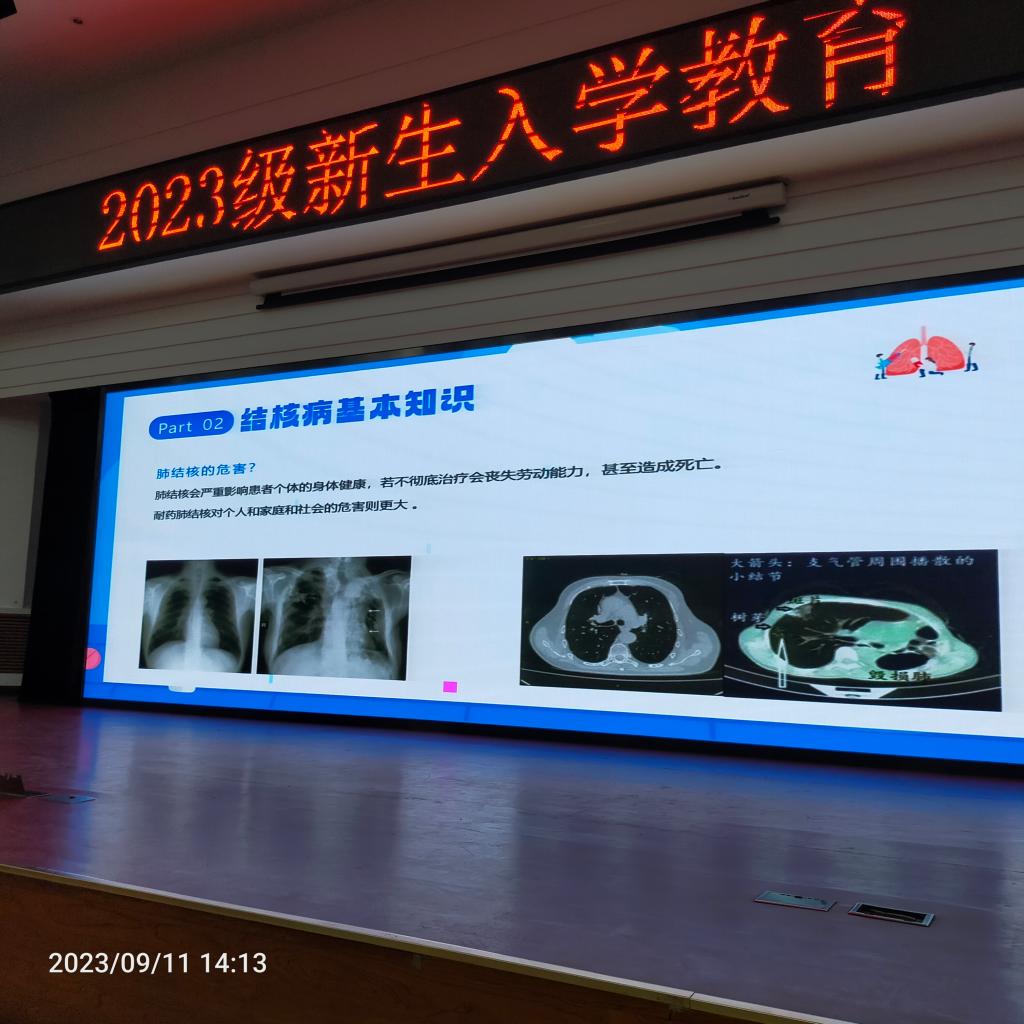 劉倩醫(yī)師為同學(xué)們講解了肺結(jié)核的防治知識。劉倩醫(yī)師就結(jié)核病的發(fā)展史、結(jié)核菌傳染途徑、預(yù)防措施、典型癥狀、易發(fā)人群、治療原則、預(yù)防措施等方面進行了詳細的講解,讓同學(xué)們對結(jié)核病的防控有了全面的了解。