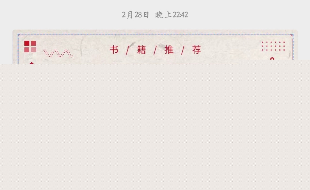 書籍是橫渡時間大海的航船。校區(qū)學生會借助網(wǎng)絡開放文庫和自有圖書,依托微信公眾號開設“讀書推薦”專欄,每周推送名著導讀,并附上在線閱讀鏈接,方便學生線上閱讀。