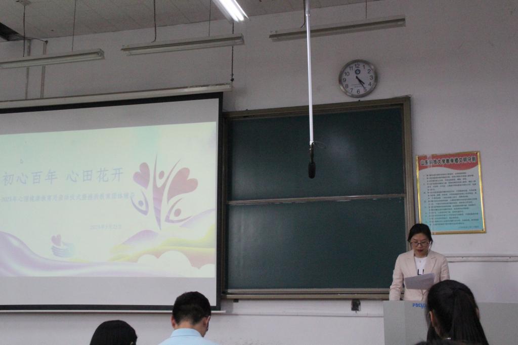 趙長青在講話中,首先給大家介紹了“5·25”大學生心理健康日的由來和歷年心理健康日的主題;指出濟南校區(qū)非常重視學生的心理健康工作,專門設置心理健康教育中心,配備心理健康教育專兼職教師、學生心理健康委員、心理健康觀察員,聘請專業(yè)醫(yī)生為學生每周預約心理輔導。他還結合今年522日發(fā)生的寶馬車主劉某因投資失敗心理失衡報復社會、甘肅白銀市馬拉松比賽22名優(yōu)秀運動員遇難、共和國勛章獲得者袁隆平先生逝世和中國肝膽外科之父、感動中國2011年年度人物吳孟超院士逝世四件令人悲痛的事件談了自己的看法。他告訴同學們人生十有八九不如意,人生的路不可能平平坦坦,在遇到逆境和坎坷,要堅強、勇敢、努力戰(zhàn)勝困難;遇到無法逾越的客觀事件、難題或目標時,主動放棄、及時止損;懂得取舍不易和舍與得的辯證關系;學習袁隆平先生擇一事,終一生,一生只為一件事和為人民服務的精神;學習吳孟超院士的愛國、樂觀、豁達、擁有健康、奮斗進取的精神風范。最后他向在座的師生提出三點希望:一是希望學生工作干部、輔導員、心理健康委員、心理健康觀察員,高度重視大學生心理健康工作,關心關愛大學生心理健康,不忘黨的百年初心,為大學生心理健康把脈問診、保駕護航;二是希望心理健康工作的師生提升心理健康教育業(yè)務技能,為學生心田花開貢獻智慧與力量;三是希望廣大學生珍惜珍視心理健康文化月的各項活動,深入其中,努力成為關愛自我、關愛他人;認知自我、認知他人;悅納自我、悅納他人心理健康的大學生。