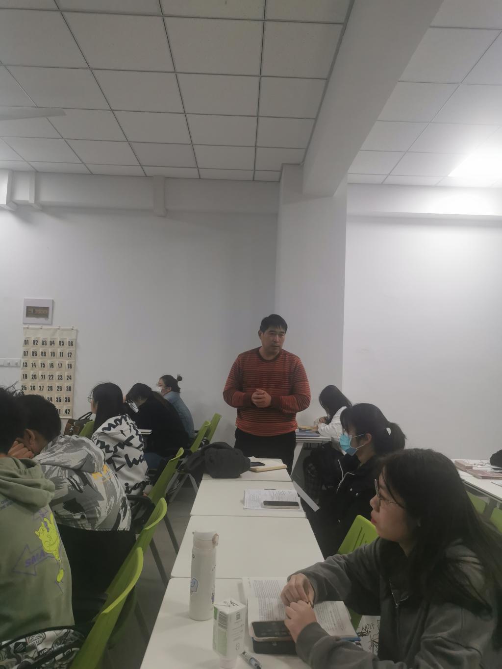講座開始前,喬楊與輔導員進行了座談,一起就常見的心理健康問題及如何處置學生心理問題進行面對面交流與指導。