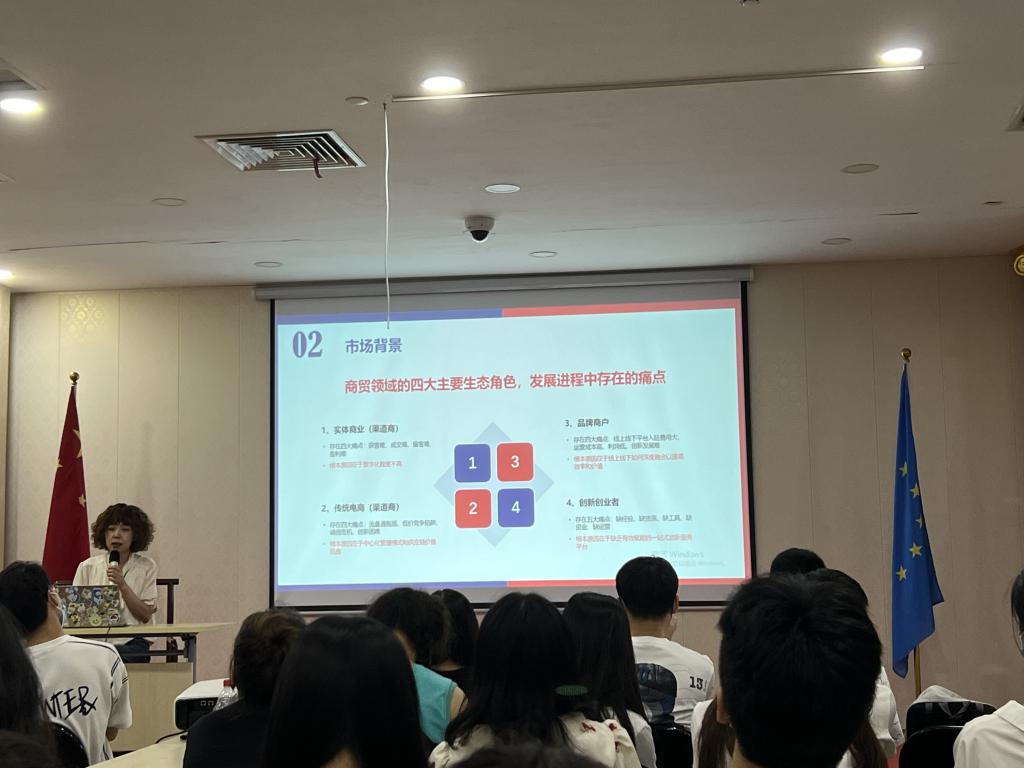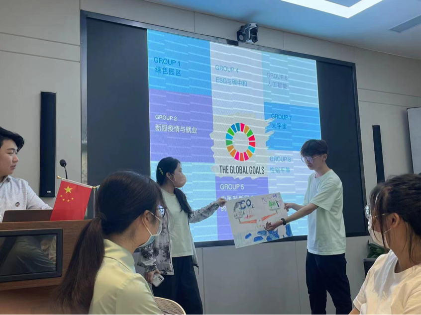 期間,外交部南南合作促進(jìn)會上海辦事處主任洪涌清給同學(xué)們介紹了南南合作促進(jìn)會,同時分享了如何在國際組織發(fā)展及任職,讓同學(xué)們了解了不同的國際組織所需要具備的能力。聯(lián)合國工業(yè)發(fā)展組織全球創(chuàng)新網(wǎng)絡(luò)項目上海全球科創(chuàng)中心-劉晶博士介紹了科創(chuàng)中心相關(guān)情況,同學(xué)們還以聯(lián)合國SDG的17個目標(biāo)(涉及貧困、資源、健康、生產(chǎn)、就業(yè)、平等、社會、消費、教育等方面的17個目標(biāo))為主題,以小組為單位創(chuàng)作海報并進(jìn)行海報演講,由嘉賓點評,更進(jìn)一步了解聯(lián)合國工業(yè)發(fā)展組織全球創(chuàng)新網(wǎng)絡(luò)項目及聯(lián)合國SDG17個目標(biāo)。歐盟中國委員會長三角合作中心主任陳平介紹了國際跨境電商產(chǎn)業(yè)園全渠道模式?;顒悠陂g,活動主辦方還組織同學(xué)們參觀了中共一大紀(jì)念館及中共一大會址,接受了紅色洗禮。