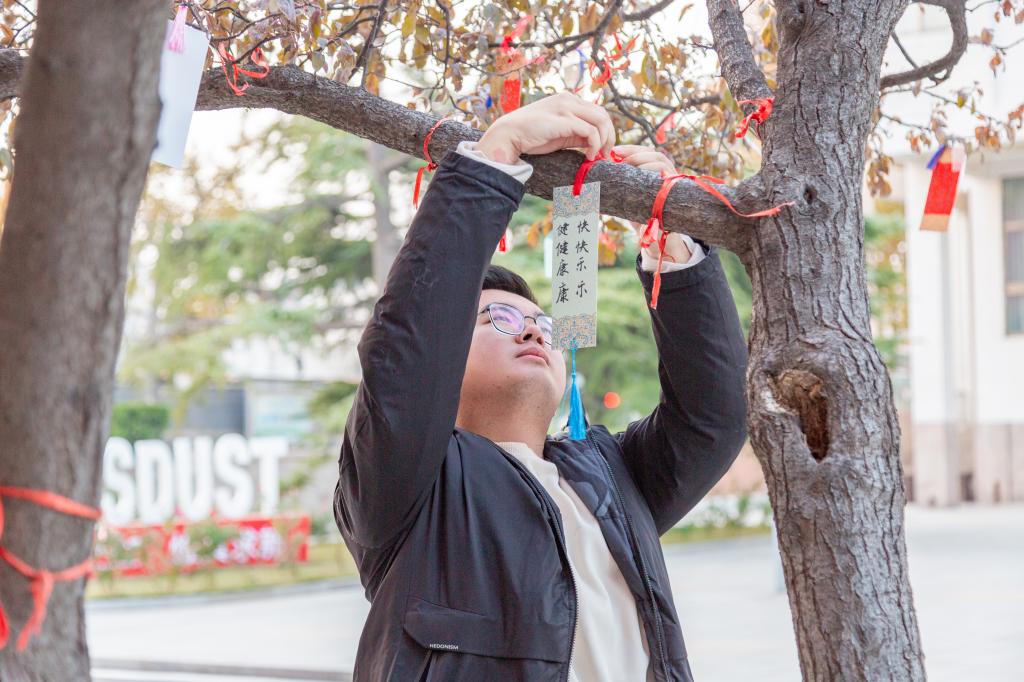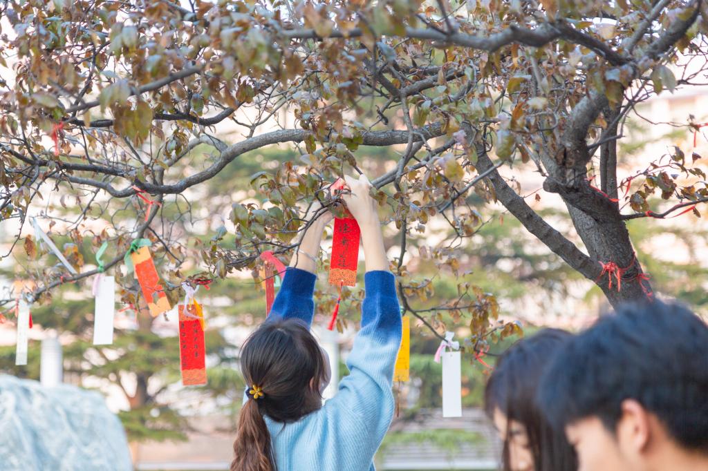 近期,濟(jì)南校區(qū)紅葉李樹枝上掛滿了一張張寫滿祝福的書簽,校區(qū)學(xué)生會“溫暖隨行,一研為定”寫書簽送祝??佳形繂柣顒游藥熒鷤兊淖⒁??;顒訌?span lang="EN-US">11月21日開始,截止到考研前夕,400余名師生歷經(jīng)30天,制作了477份原創(chuàng)書簽。這些特色書簽,設(shè)計(jì)精美,寓意深遠(yuǎn),一部分作為禮物送給考研學(xué)子,一部分掛在許愿樹上激勵他們,以此為備考學(xué)子送去最誠摯的祝福。