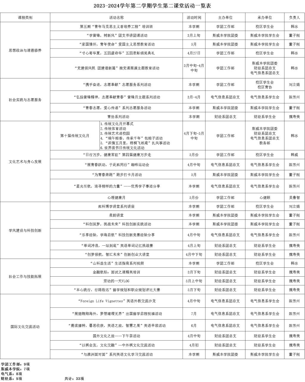 2023-2024學(xué)年第二學(xué)期學(xué)生第二課堂活動(dòng)一覽表